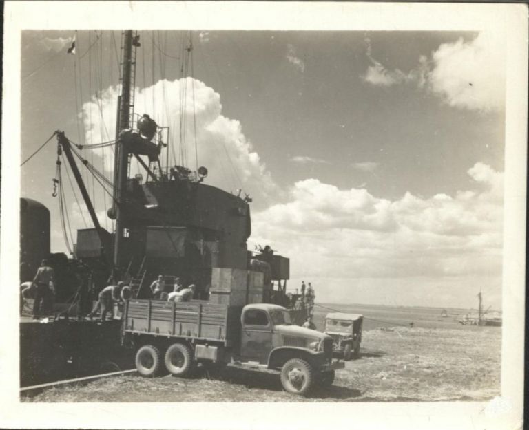 [Untitled - Provisioning the USS Somersworth, PCE(R)-849, docked at Manila Bay].