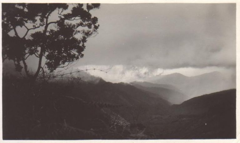 Subject: Rain clouds and a view of mountains, probably taken along the road up to Baguio. See also OFI-002570 and ROJR-000022 for similar views.