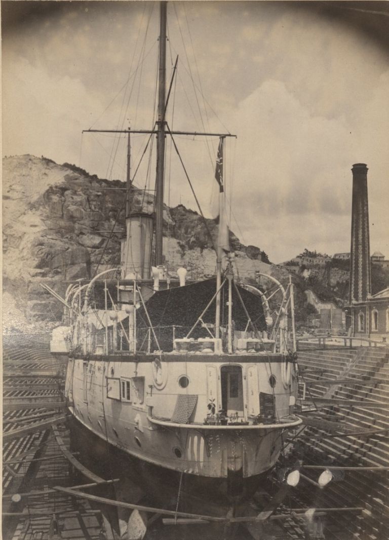 Subject: Likely a British transport or passenger ship (no deck guns are visible; two funnels whereas most American transports of the time had one stack; note the British flag on the ship's