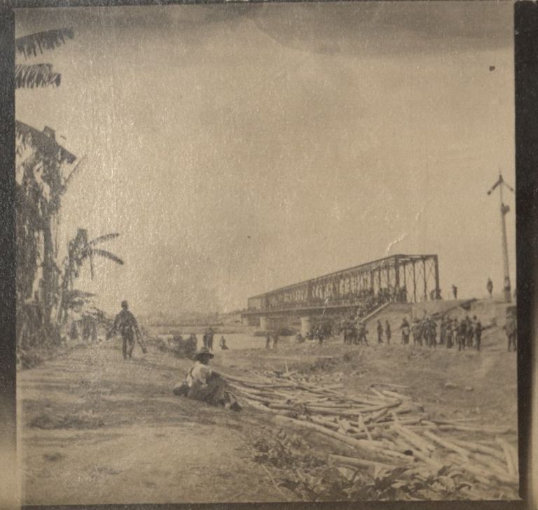 [Untitled - Soldiers surround railroad bridge over the Pampanga River].