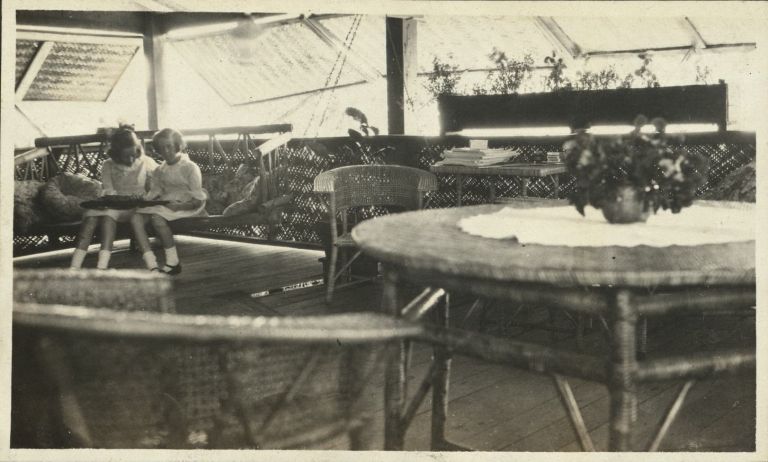 [Untitled - Steger girls reading on patio, Fort Wint, Grande Island?]