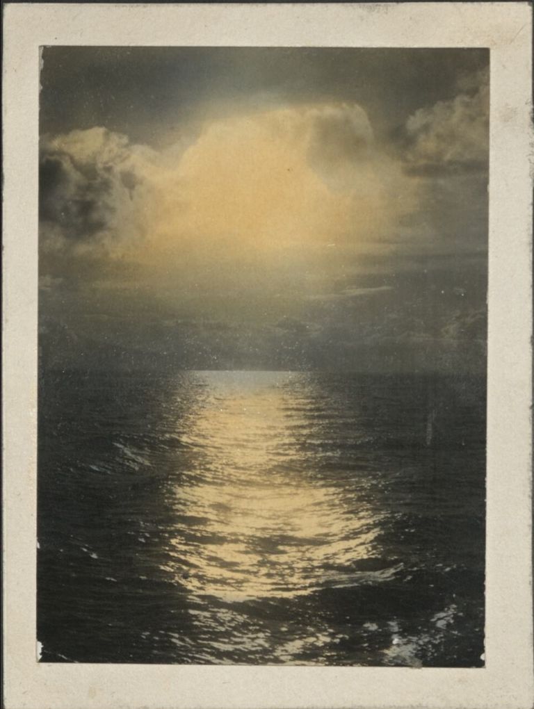 Subject: Sunset on Manila Bay with reflection of sunlight on the water. Probably taken on the ferry boat between Manila and Corregidor. See also OFI-004278 and OFI-00