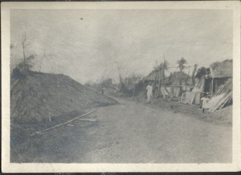 [Untitled - A thatched roof blown off a house now lies in the street].