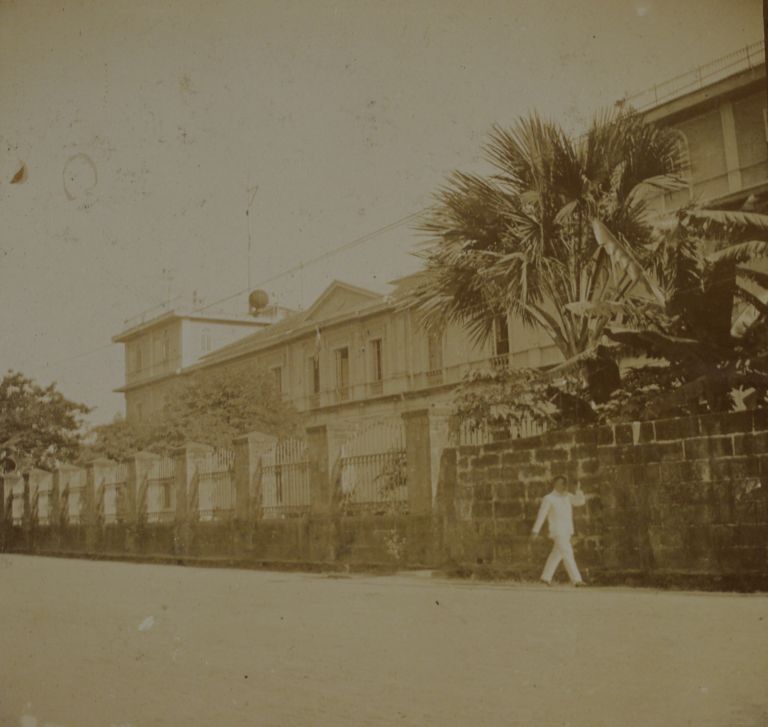 Subject: As-yet unidentfied building, possibly a college in Manila. It is similar to the OFI-002120 but the front of this building is flush.
