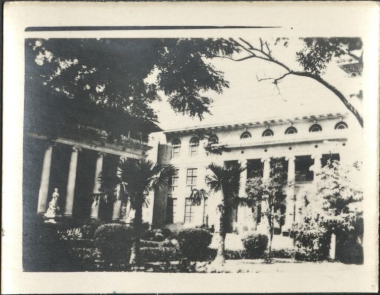 Subject: The Library and Administration building at the University of the Philippines - Manila campus, before the battle for liberation in 1945. See OFI-001356b for the same view after the battle sev
