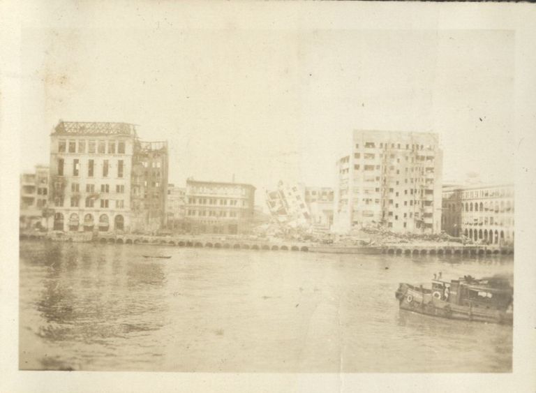 [Untitled - View across Pasig River to war-damaged buildings on Escolta].