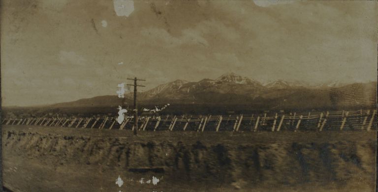Subject: Another in the series of this traveler's journey across the U.S. prior to embarking for Manila. This is a view from the train at snow-capped mountains (the Rockies?) over an elabo