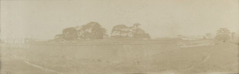 Subject: Very faded image of Intramuros walls and the weed-choked moat, which was filled in during the American period to become the "Sunken Gardens."