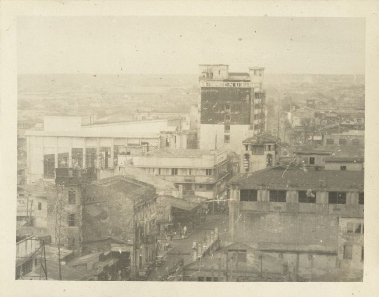 Subject: Although this appears to be a war-damaged business district in Manila, it's difficult to find any clear landmarks to pinpoint the location. It may be in Binondo or Quiapo.
