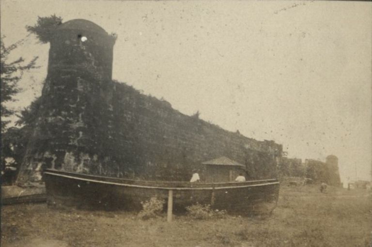 [Untitled - Watchtower and beached boat, Fort San Pedro, Cebu].
