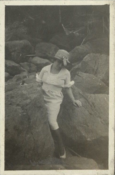Untitled [Woman squeezing through boulders, Fort Wint, Grande Island, Subic Bay].