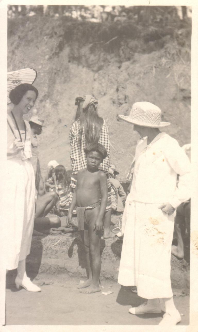 [Untitled - Women, possibly Julienne L. Fournier, pose with an Igorot boy].