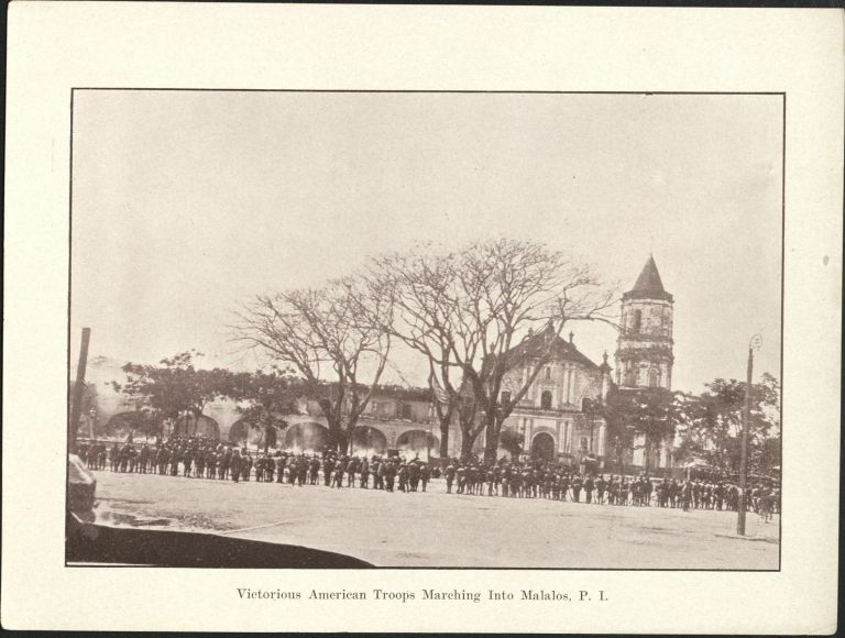 Victorious American troops marching into Malalos [Malolos], P. I.