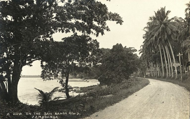 Subject: Gravel road curving to follow seashore. San Ramon is part of barangay Talisayan and became a part of it because of its penal farm. The prison personnel established their residence outside the