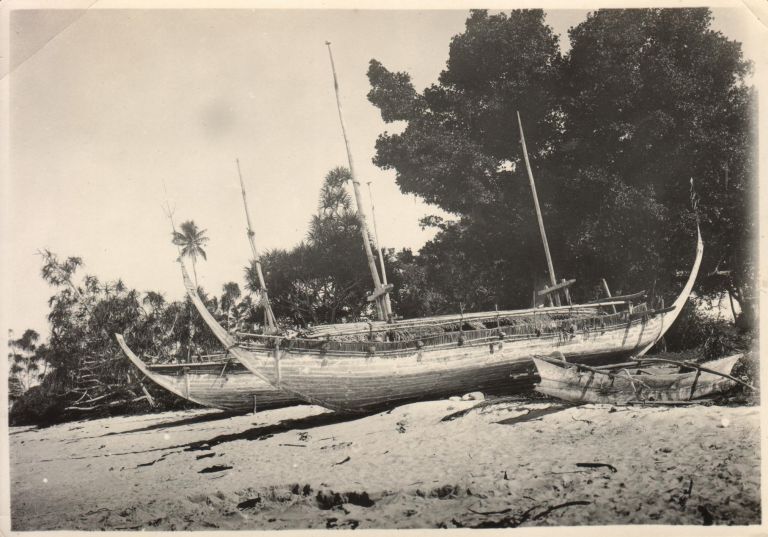 Subject: Fishing boats pulled up onto the beach in Mindanao. It's unclear where "Las Palmas" is, but that's an original handwritten caption on the back from the period. Today "Las Palmas" seems to be