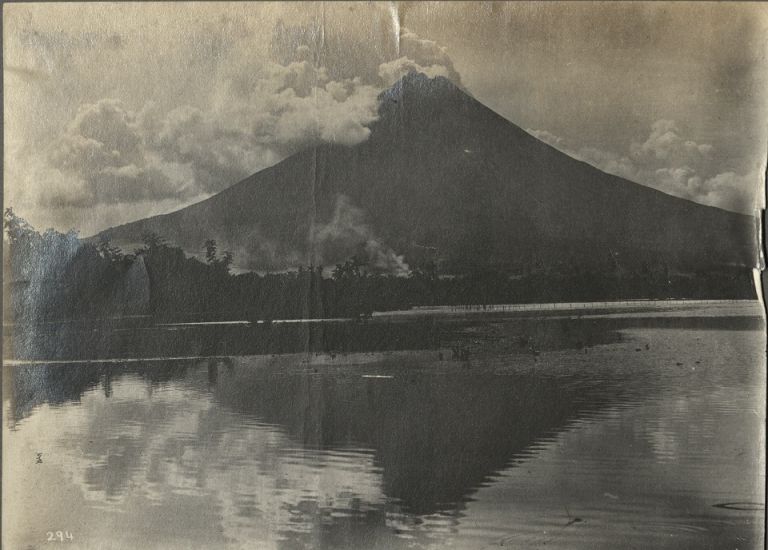 Volcano of Mayon - 10,000 ft. high. Legaspi is situated on east & Tabaco on west side.