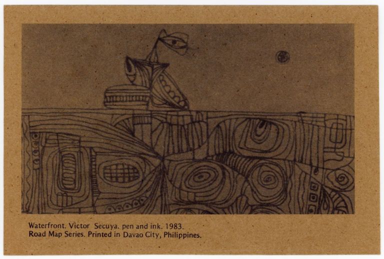 Reproduction of a pen and ink drawing by Victor Secuya, 1983. Road Map Series. Road Map Series is an independent art-house publication in Davao edited by Tita Lacambra Ayala.