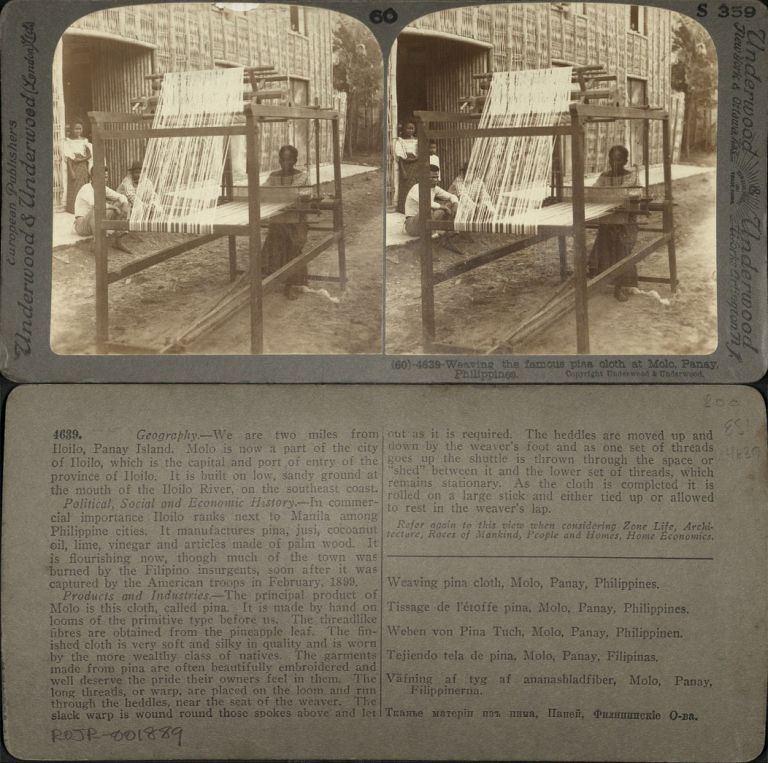 Weaving the famous pina cloth at Molo, Panay, Philippines.