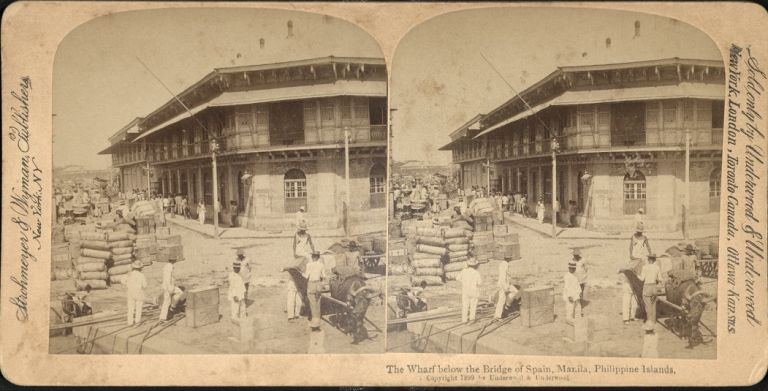 Underwood #U25a. Busy cargo-loading scene in commercial district along Pasig River.