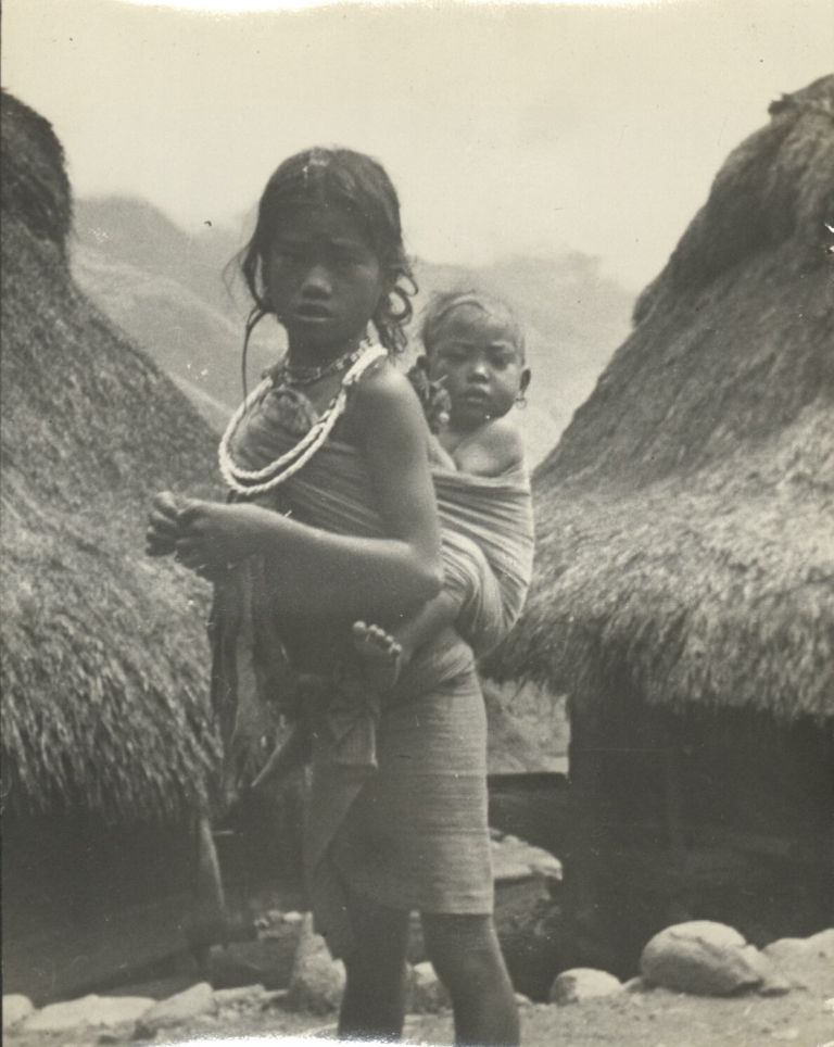 A young Igorot girl carrying her sister.
