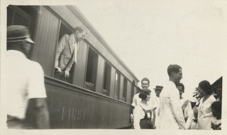 Subject: Harry Jr. departs on a rail car, likely at Daraga, Albay. Perhaps he is returning from Albay to boarding at Brent School, Baguio.