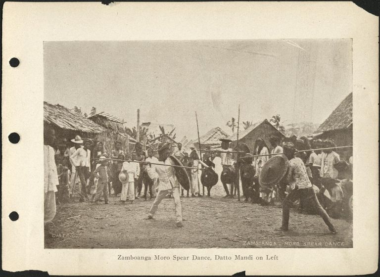 Zamboanga Moro spear dance, Datto Mandi on left.