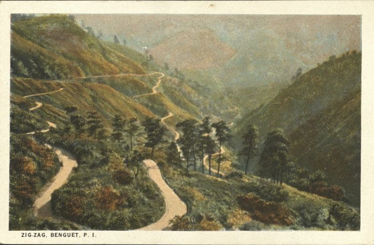 Subject: The famous winding section of the road up to Baguio in mountainous territory in Benguet Province.