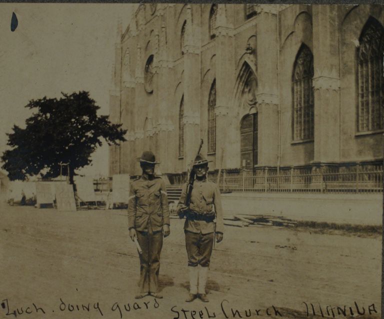 Zuch doing guard [duty], Steel Church [San Sebastian], Manila.