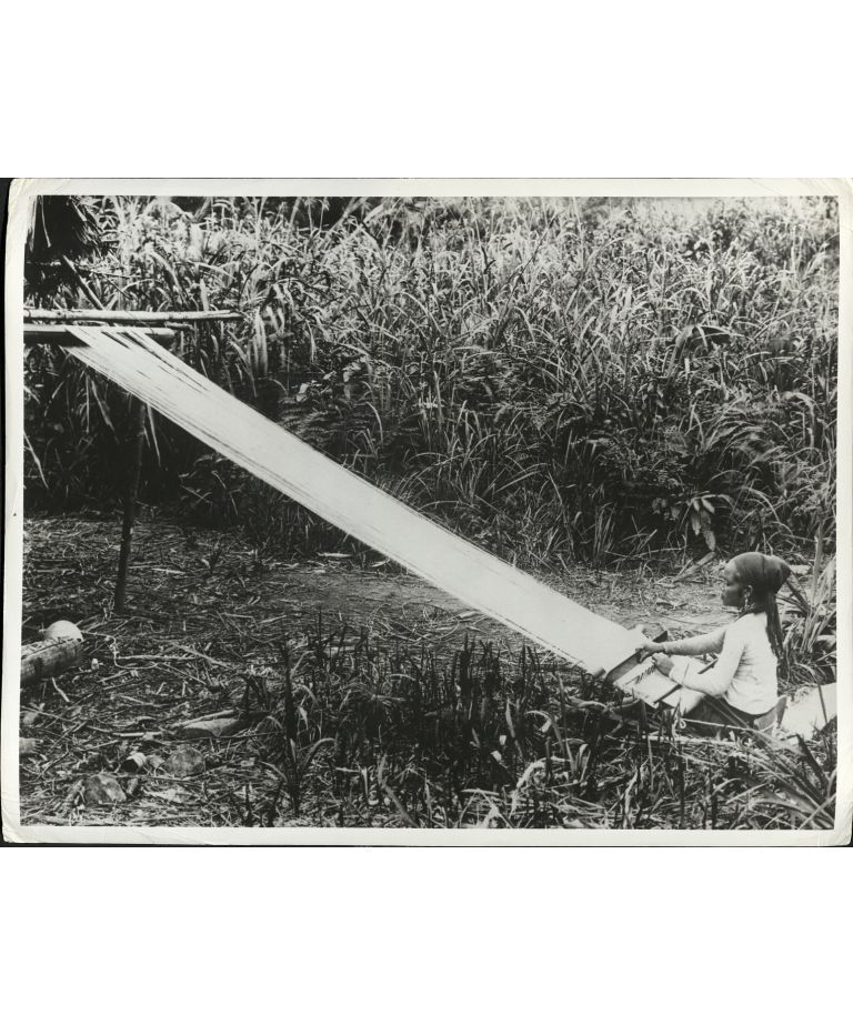 PHILIPPINES: Hemp drying process. E-276. [mislabeled - actually a Filipina weaving outdoors].