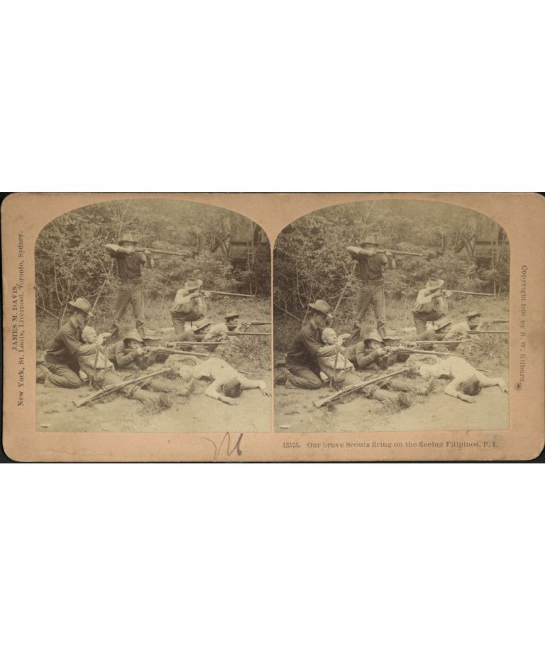 Our brave Scouts firing on the fleeing Filipinos, P. I.