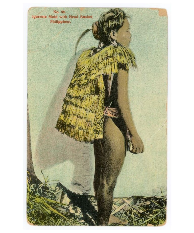 No. 92. Igorrote [Igorot] maid with head basket, Philippines.