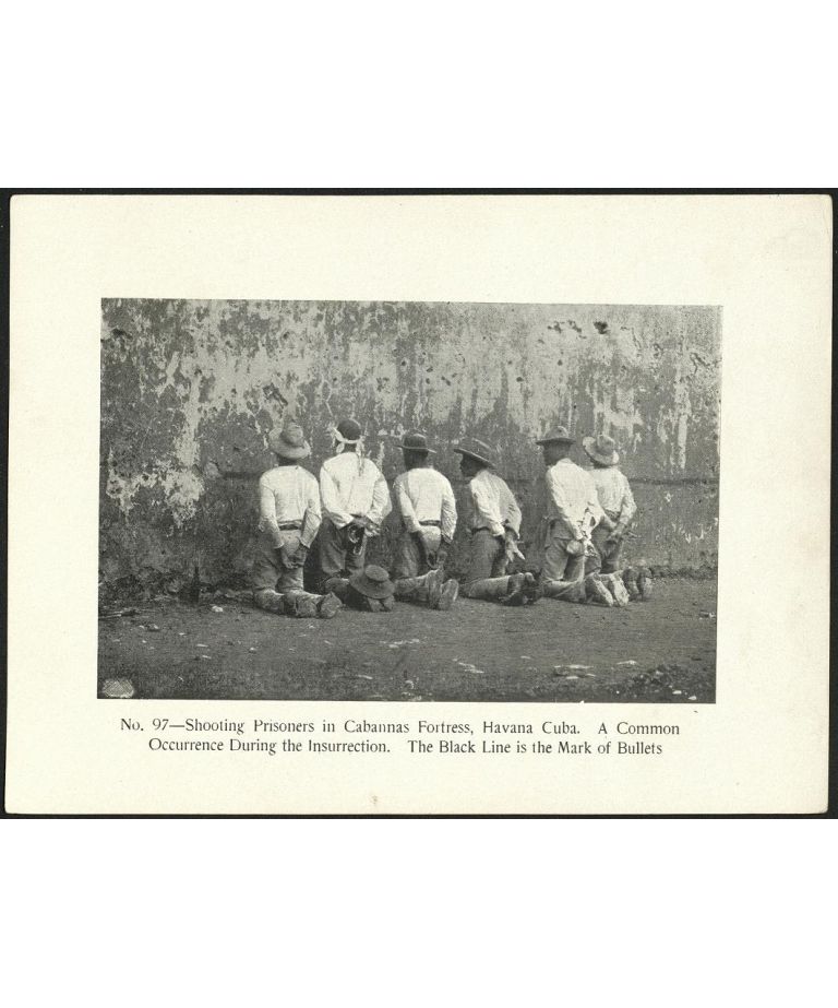 No. 97 - Shooting prisoners in Cabannas [La Cabana] Fortress, Havana Cuba. A common occurrence during the insurrection. The black line is the mark of bullets.