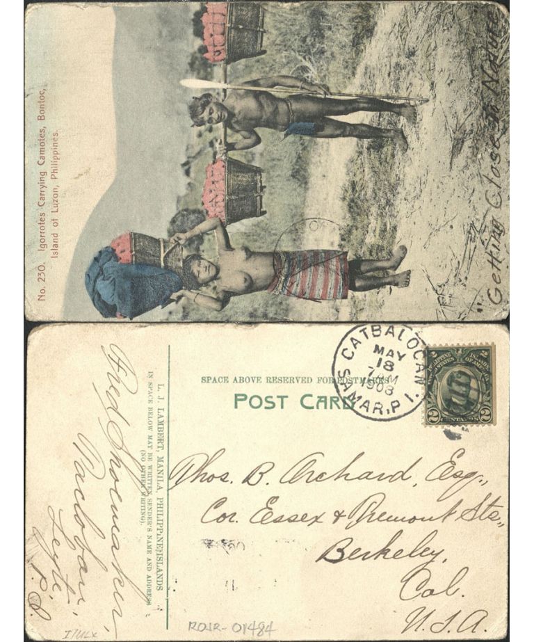 No. 230. Igorrotes [Igorots] Carrying Camotes, Bontoc, Island of Luzon, Philippines.