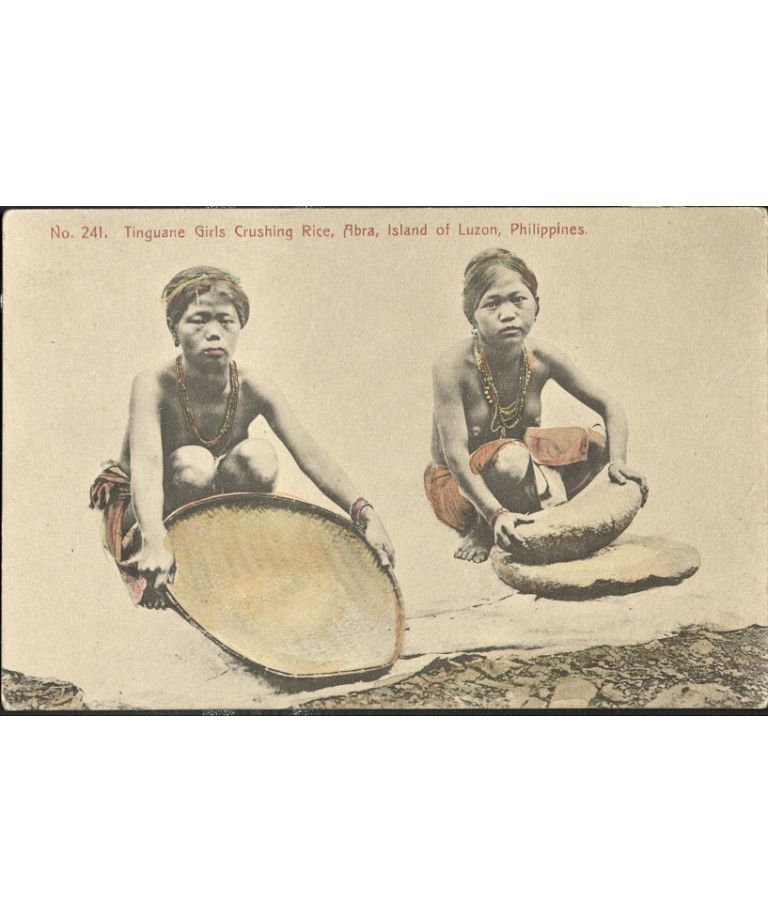 No. 241. Tinguane [Tinguian, or Itneg] Girls Crushing Rice, Abra, Island of Luzon, Philippines.