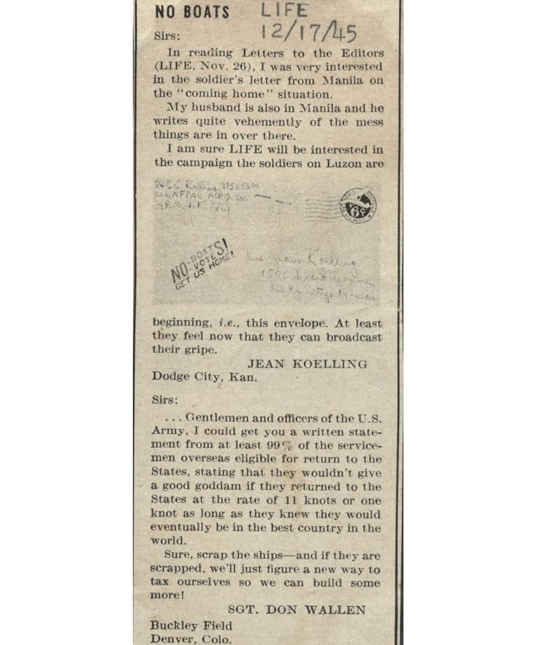 No boats [Letters to the Editor, LIFE Magazine].