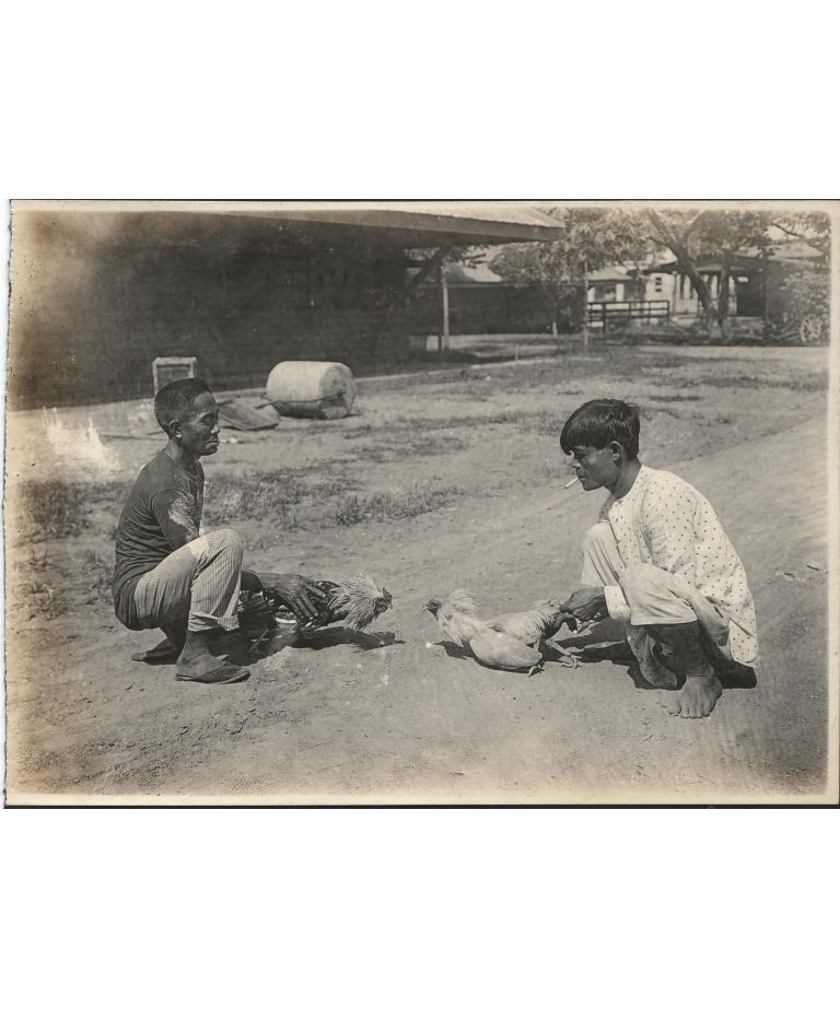 Two Filipino men with their fighting cocks. Tagalogs, Manila.