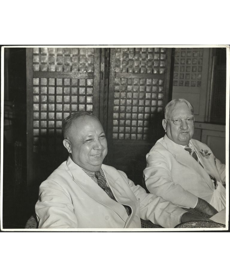 Mr. V. [Vicente] Madrigal, principal Filipino businessman, on the left, and Judge [John W.] Hauserman [Hausermann] on the right.