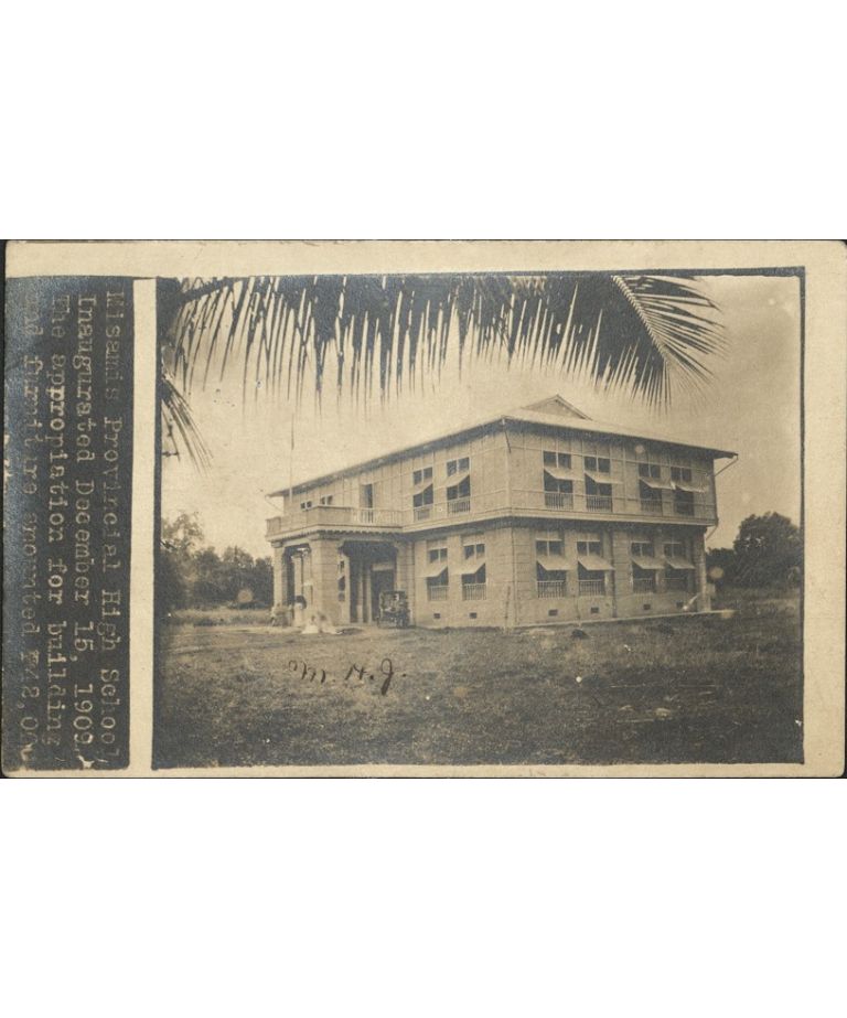 Misamis Provincial High School, Inaugurated December 15, 1909. The appropriation for building and furniture amounted ?42,000.