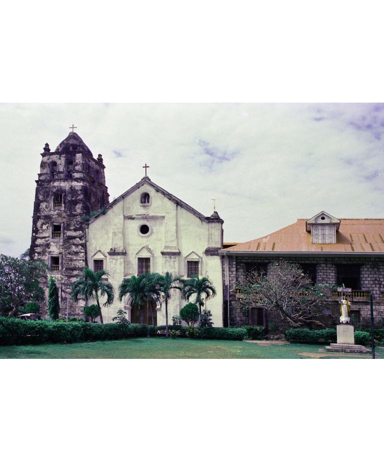 Maragondon Church, Cavite - facade, convent, and bell tower view.