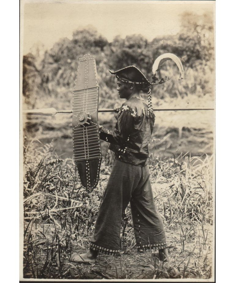 Mandaya man (Inca) using a spear and a shield. Compostela, upper Agusan River, Davao District, Moro Province.