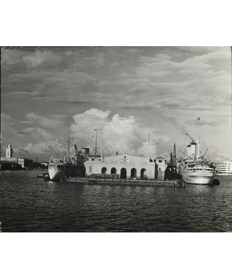 Liners tied up at the pier in Manila Harbor, where Japanese bombs are now falling almost incessantly.