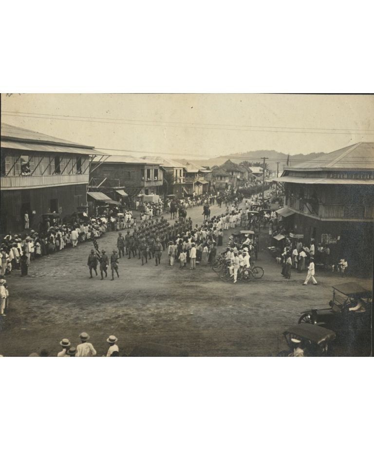 Liberty Loan parade Oct. 19th, 1917, Iloilo police force then H.W.B. [Henry Willis Baird] on middle horse... [Calle Mabini, Iloilo].
