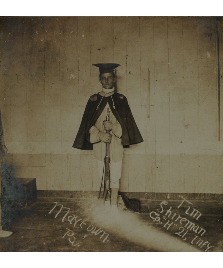 Tim Shireman, Co. [Company] "H" 21st Infy [Infantry], Maytown, Pa. [Pennsylvania].