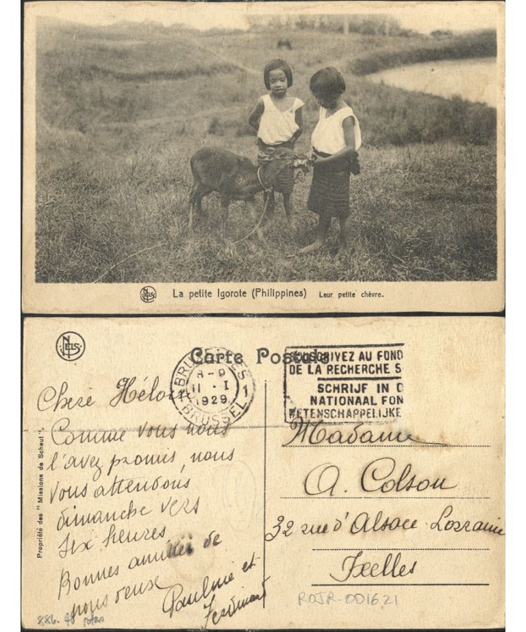 La petite Igorote (Philippines). Leur petite chevre. [The little Igorot. Their little goat].