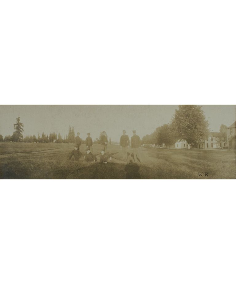 K.R. [Army men posing on parade grounds, Vancouver Barracks].
