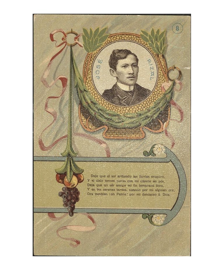 Jos� Rizal �Mi �ltimo Adi�s� 8th stanza. Deja que el sol ardiendo las lluvias evapore� [Let the burning sun the raindrops vaporize�]