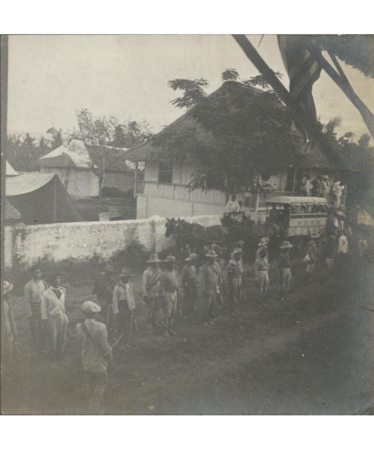 Insurgent Families coming into the American Lines with flag of truce, Philippines.
