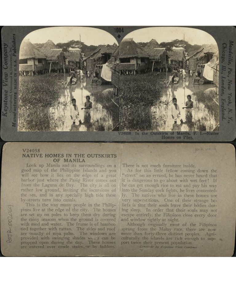 In the Outskirts of Manila, P. I. - Native Homes on Piles.