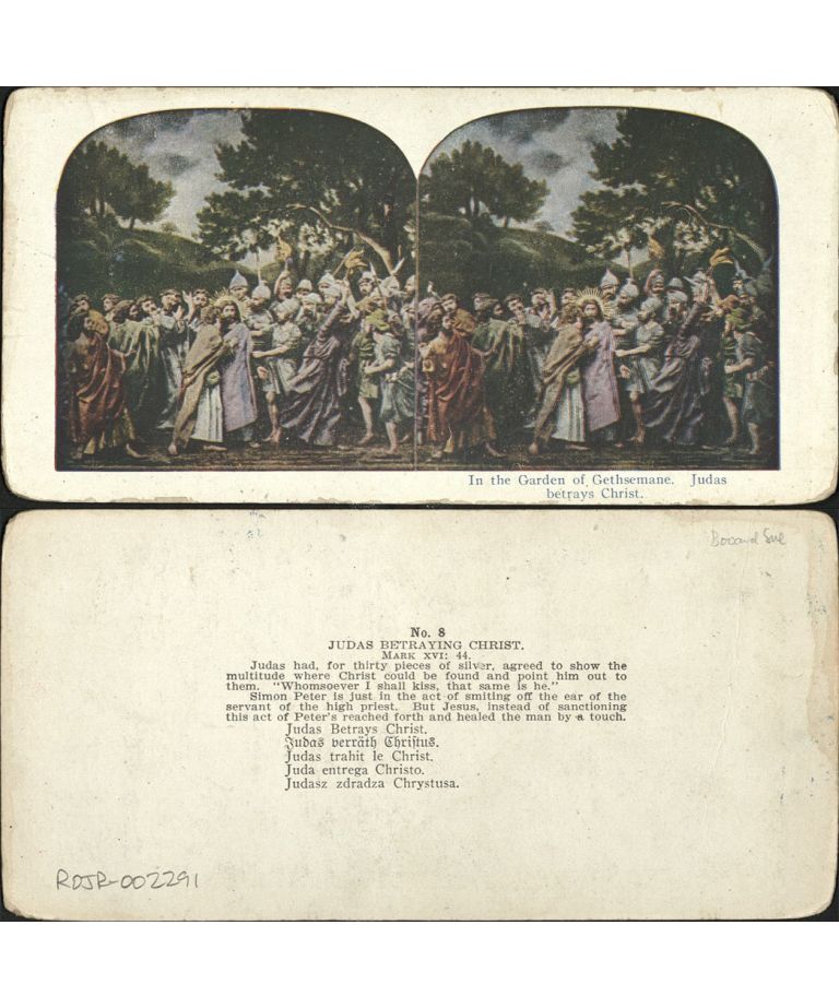 In the Garden of Gethsemane. Judas betrays Christ.