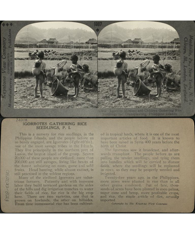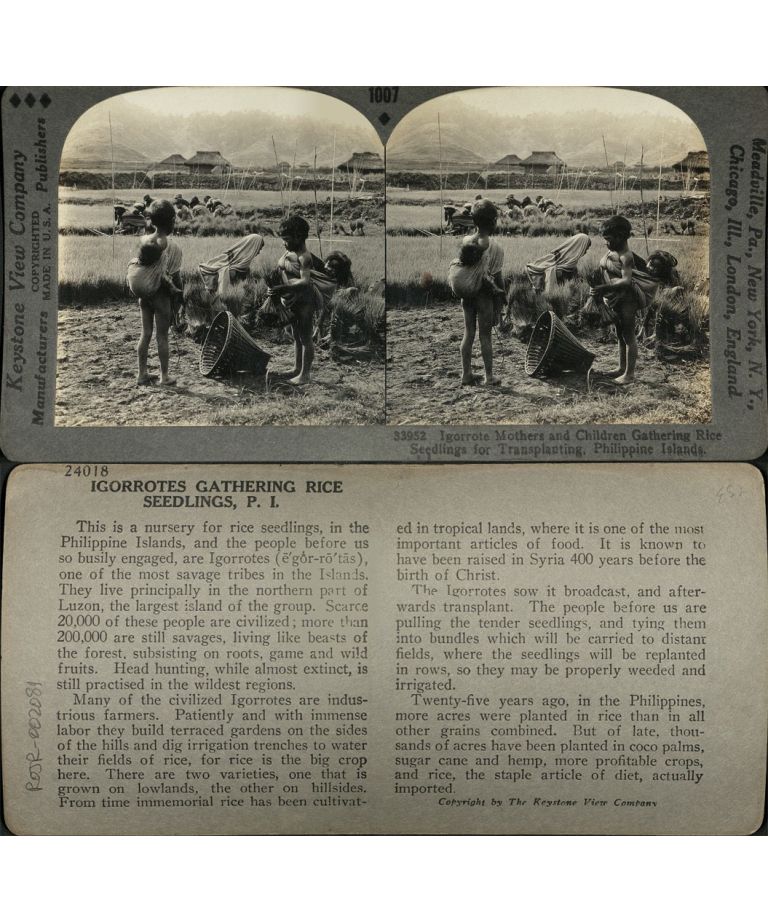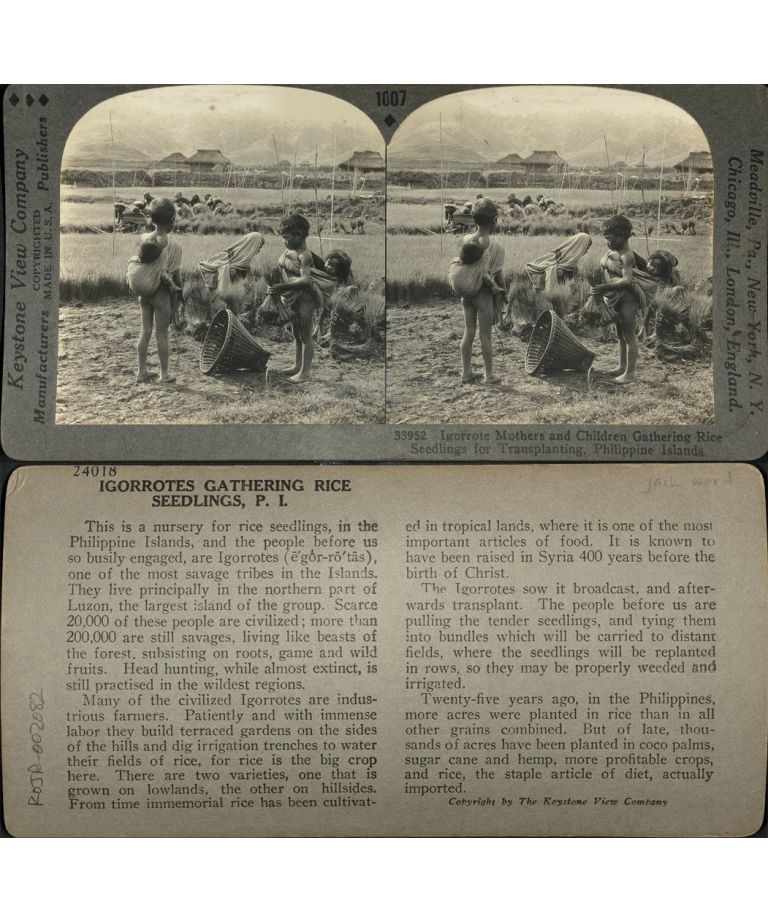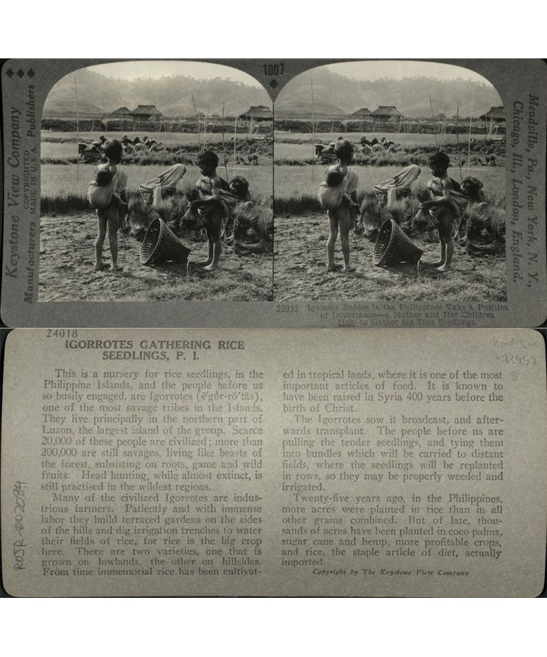 Igorrote [Igorot] Babies in the Philippines Take a Position of Importance - a Mother and her Children Help to Gather the Rice Seedlings.